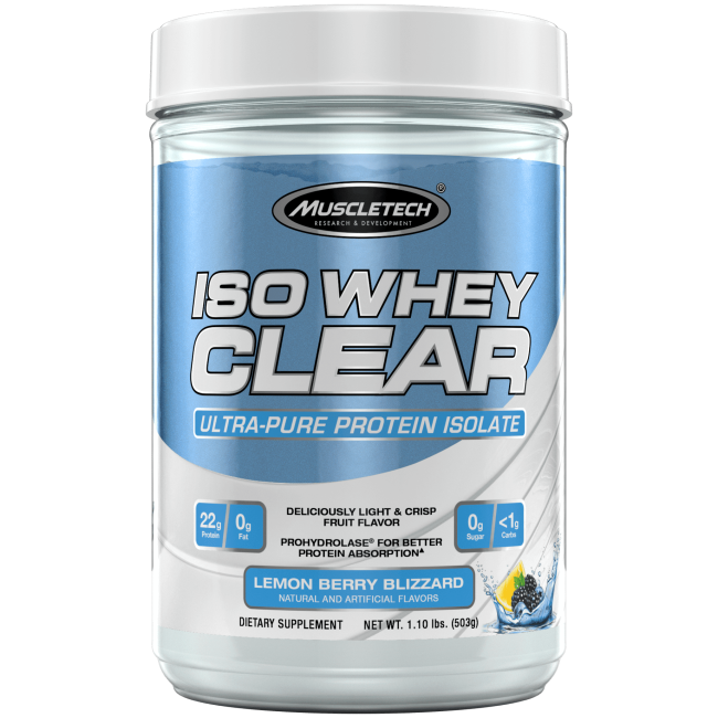 Iso Whey Clear Hydrolyzed Protein Drink Mix Powder, Light and Refreshing, Ultra-Pure Isolate (22g), Keto Friendly, Lemon Berry Blizzard, 19 servings ( 500g )