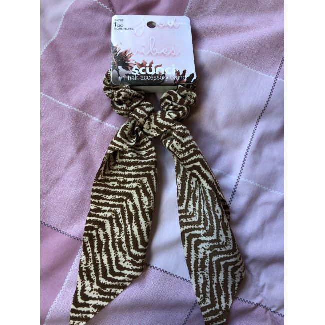 You're reviewing:Scunci Hair Tie Bow Brown Beige Print Good Vibes Scrunchie