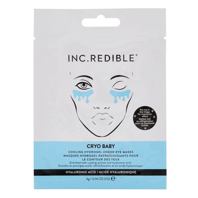 Get ready for chilled vibes! Our cooling drippy under-eye masks are enriched with cooling actives and hyaluronic acid to soothe your delicate under-eye area. Store them in the fridge for an added cooling sensation around the eyes, then snap a selfie while you chill. The INC.redible Cryo Baby Cryotherapy Hydrogel Under-eye Mask is a facial treatment designed to soothe the delicate under-eye area. It is enriched with cooling actives and hyaluronic acid to hydrate the skin around the eyes. Vegan and cruelty-free, and it is effective in making the skin photo-ready The product comes in a 0.5 fl oz container and can be purchased online or in-store The mask can be used to reduce the appearance of fine lines and wrinkles under the eyes and replenish and refresh the skin around the eyes