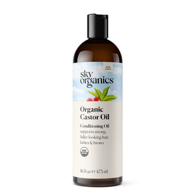 Sky Organics Organic Castor Oil supports stronger, fuller-looking hair, eyelashes, and eyebrows. Full of nourishing fatty acids, this 100% pure, virgin oil is moisturizing and conditions your scalp, hair roots, and hair strands to help support thick, full, and healthy-looking hair. This organic oil can be applied to your hair by massaging it into a dry scalp and leaving it on for one hour, then rinsing it with shampoo. You can also apply 1-2 drops of the hair oil to your lash line and brows nightly. We consider organic certification to be the highest clean, natural standard so we don't need a "free from" list to assure you of our Organic Castor Oil's purity and sustainability! Sky Organics Organic Castor Oil for hair, lashes, and brows is a great addition to your haircare routine.