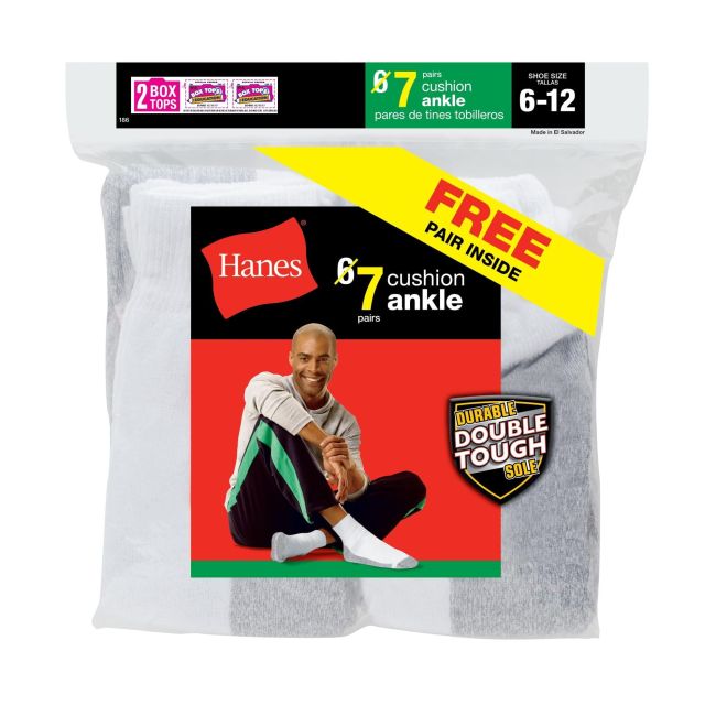 You're reviewing:Hanes Mens Extra Comfortable Durable Heel and Toe Ankle Socks, 6-12, 7 Pack, White