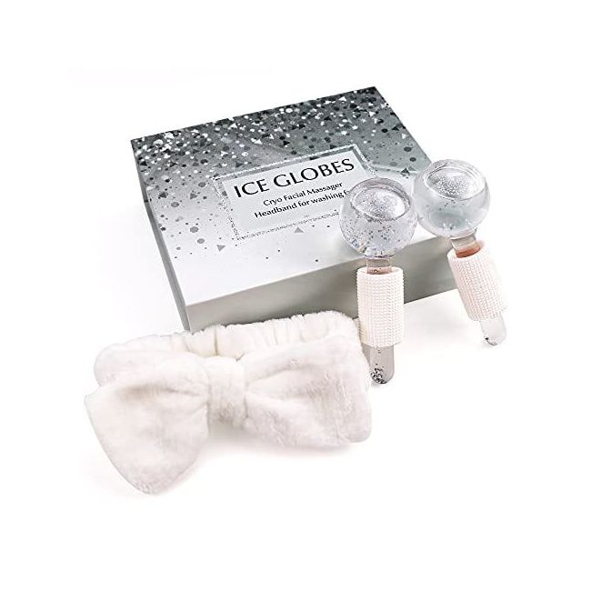 Introduction: Celebrate the magnificence of your true skin or get your new cryo facial off to a great start with our complete ice globe kit Our Promise: Treat and cherish your skin in complete confidence. We are completely sure that you will love every one of our products but if for any reason you?re not happy with any item from our facial care range just let us know and we will fix it. We are proud that our results speak for themselves and that once you have experienced the quality of care our kit provides you?ll never go back. Our Quality: You deserve the best and so does your skin. Our entire team is wholeheartedly committed to making sure that each and every product we offer is of the highest quality using only premium ingredients and materials. We make sure our products are skin friendly and will not have to be nervous of any harsh rash or temp bursting of glass. What is Included: 2ea Facial Ice Globes: Ice globes are cooling wands used in facials to soothe redness and decrease inflammation and the appearance of large pores. We love how they stimulate and exercise facial nerves and muscles which tighten your skin and aid in the elimination of fine lines. This ice therapy is awesome for post acne treatment as well. 1ea Spa Headband: The bow shape on the headband is pretty cute it can make you extraordinarily sweet. This material is made up of soft elastic coral fleece to avoid any reactions to skin. The bow hair band is suitable for wearing while washing your face bathing doing sports enjoying a spa party or whenever you want to hold your hair. Who Is This a Perfect Gift For: Husband or Wife Dad Mother-In-Law Aunt Grandmother Boss Colleague or for any beauty salons!