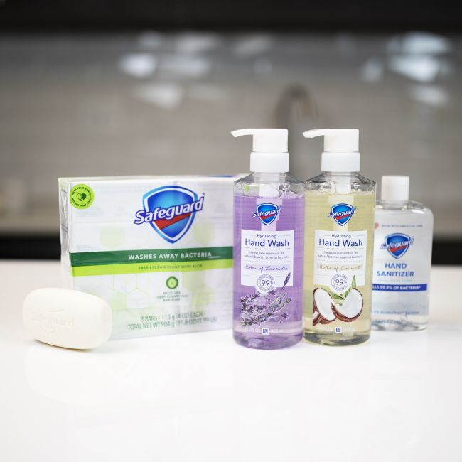 Safeguard hand wash is made with a Natural Moisturizing Factor that helps maintain skin's protective barrier. It doesn't just wash away 99% of bacteria* - It balances skin's pH & helps retain moisture**, enabling skin to be the first line of defense against bacteria.* in lab testing vs. S. aureus & E. coli** vs. ordinary soap