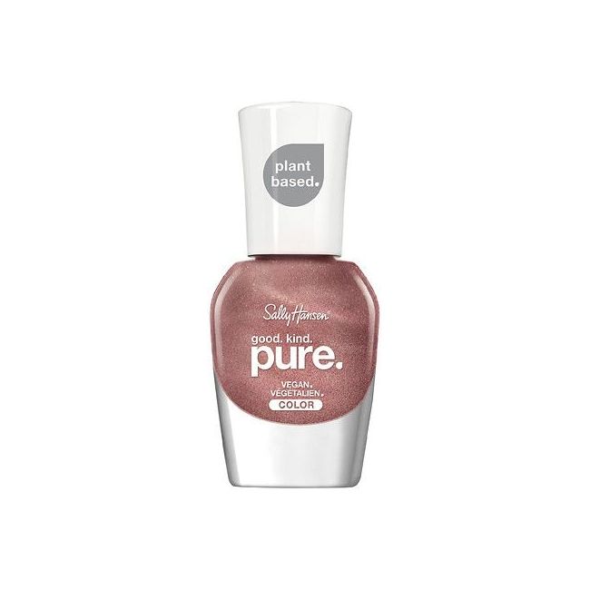 Good.Kind.Pure. Sally Hansen's 10-free natural, plant-based, 100% vegan polish offers beautiful color and shine with no compromise-Availble in 30 rich, caring colors and a top coat and hardener-100% natural, plant based brush bristles for better application-Provides radiant, thy looking nails-All natural hardener improves the look of ridges and imperfections and seals fragile nails-All natural Top Coat provides protection and care and helps color adhere to the nail- Delivering nothing but color onto the nails*10-Free. Formulated without:Formaldehyde, Formaldehyde Resin, Toluene, Xylene, Acetone, Phthalates (including Dbp), Camphor, Parabens, Ethyl Tosylamide, Triphenyl Phosphate (Tpp), + No animal-derived ingredients.