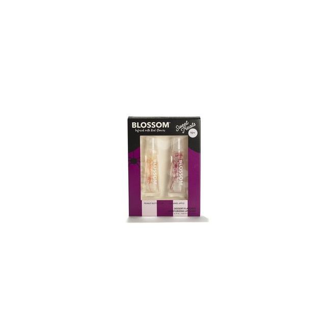 Blossom Sweet Treats Dessert-Flavored Lip Gloss Peanut Butter Cup & Caramel Apple - 2 Pack The moisturinzing Lip Gloss hydrates and nourishes with delectable sweetness. The ultra-easy slanted design applicator makes it easy for you to glide on the go. Infused with real natural dried flowers.