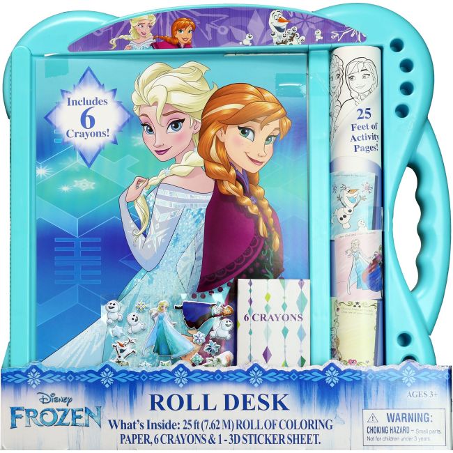Sturdy plastic art desk which includes a 25 ft. paper roll printed with fun ready to color activities. Everything stays in one place on the unit. This item is great to play with from room to room. Once an activity page has been completed simply tear it off the roll and color and draw some more! Set also includes crayons and glitter sticker sheets.