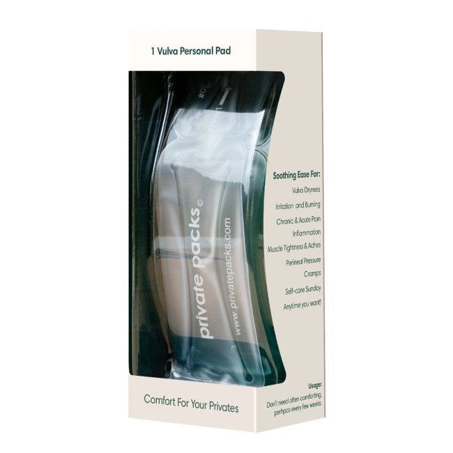 Elevate your down-there healing and keep your peas for dinnertime. Private Packs were created with your intimate body part health in mind. Are you experiencing a yeast infection, Vulvodynia, Vaginismus, menopause-related vaginal dryness, spinning/cycling-induced chaffing and swelling, cysts, blisters and STIs such as herpes? Well, it's time to stop making a do-it-yourself tool and treat your V to a ready-made solution you can use repeatedly. Private Packs Vulva Personal Pad is lightweight, wearable, reusable, and contours your body's natural curve. Designed to provide relief directly on your vulva discreetly, Private Packs bring comfort to your discomfort. HSA/FSA eligible