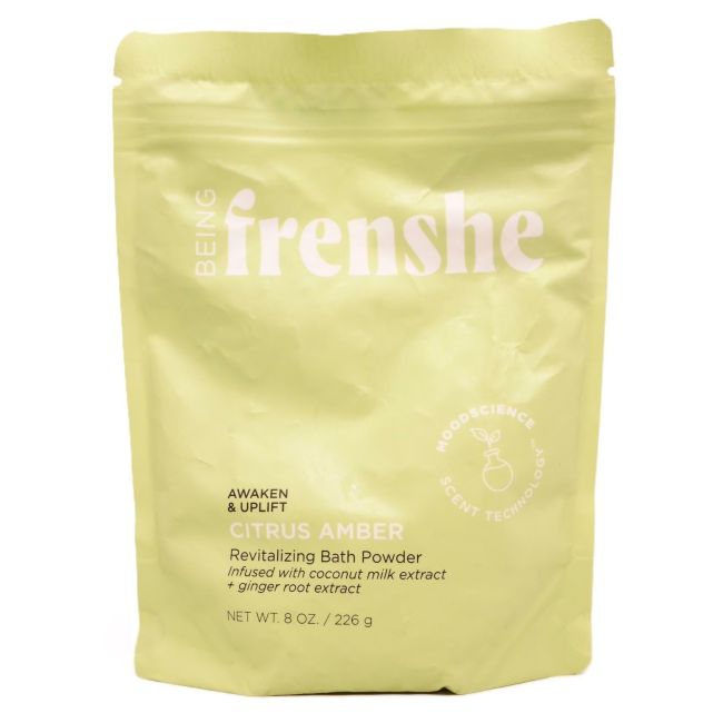 Meet your everyday wellness rituals infused with mood-boosting scent technology. The Being Frenshe Revitalizing Bath Powder is a self-care elixir made to help skin feel soft and revitalize the body. Infused with soothing coconut milk extract and antioxidant-rich tumeric root and ginger root extracts to activate your day. Why we love it: Cruelty free vegan and clean formulas free from sulfates parabens and phthalates. Being Frenshe products are infused with Mood Boosting Scent Technology? a proven technology used to create our scents. Crafted by perfumers powered by science designed to enhance your well-being. The Fragrance: The Being Frenshe Awake & Uplift wellness ritual was created to invigorate your senses and start your day on the right foot. The scent of Citrus Amber transports you the wanderlust feeling of running through a sunny blooming flower field ? awakening and motivating your spirit. An uplifting combination of sparkling lemon and zesty clementine with vibrant orange blossom and golde.