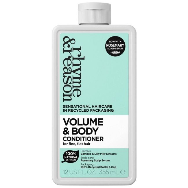 #NoNewPlastic At Rhyme & Reason we are passionate about creating amazing haircare in recycled packaging that also works towards a sustainable future. Our bottles and caps are crafted from 100% recycled1 and are 100% recyclable2 plastic and we support the 1% FOR THE PLANET® initiative to help restore and preserve the natural environment. Rated 10/10 for performance**, Volume & Body Conditioner is 97% naturally derived and formulated to help give fine, flat hair added volume, body and shine . Perk up lifeless locks with Bamboo extract & Lilly Pilly known to promote healthy hair and enriched with Rosemary Scalp Serum to nourish and hydrate the scalp. Our effective formula detangles and softens leaving hair weightlessly conditioned. Fragranced with an invigorating scent, with zesty notes of bergamot, jasmine & honeysuckle.