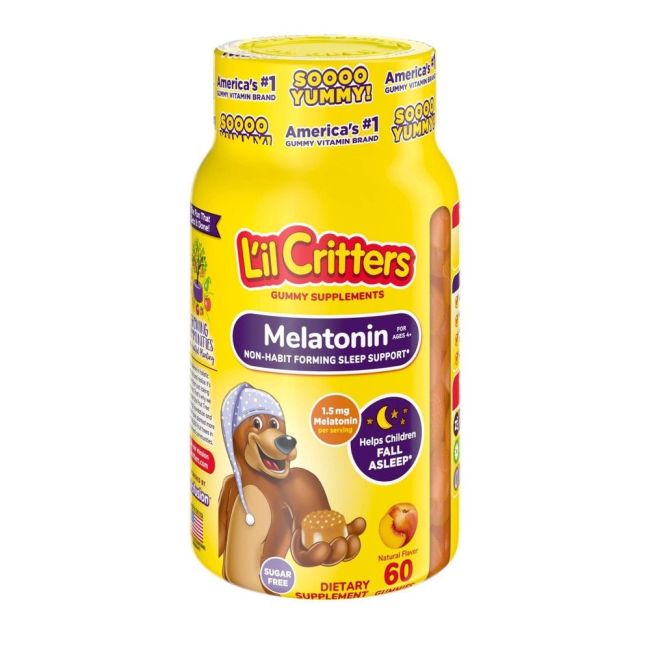 NEW from L’il Critters™, America’s #1 Kids Gummy Vitamin Brand, is our new kids product: L’il Critters™ Melatonin! Each serving has 1.5mg of melatonin for sleep support, * plus a fusion of passion flower, chamomile, and lemon balm in a natural plump peach flavor. Melatonin works naturally with your child’s body to help them fall asleep*. Lil Critters Melatonin is drug-free.