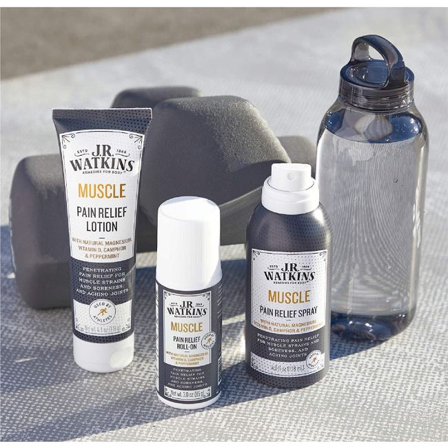 J.R. Watkins MUSCLE Pain Relief 360 Spray offers penetrating pain relief for muscle strains and soreness, and aching joints. Crafted with natural Magnesium and Camphor to provide temporary pain relief. 360 degree spray to treat hard-to-reach areas. How To Use: Adults and children 12 years and over: Apply to affected area not more than four times a day. Spray onto affected area and let absorb into skin. Wash hands after each use with cold water. Children 12 years or younger: Consult a doctor first Easy, No-Mess Applications: Available as MUSCLE Pain Relief Lotion, MUSCLE Pain Relief Spray, and MUSCLE Pain Relief Roll-On. All easy, mess-free applications for muscle strains, sore muscle relief, and joint pain relief . Key Ingredients: Our MUSCLE Pain Relief 360 Spray is crafted with Natural Magnesium, Camphor, Vitamin D, and Peppermint to help provide sore muscle relief and relief for joint aches. About J.R. Watkins: J.R. Watkins is a natural wellness brand focusing on crafting high-quality products that both soothe and solve. Since 1868, we have been focused on making sure our products are clean, efficacious, and made with naturally derived ingredients and extracts that help to soothe your body.