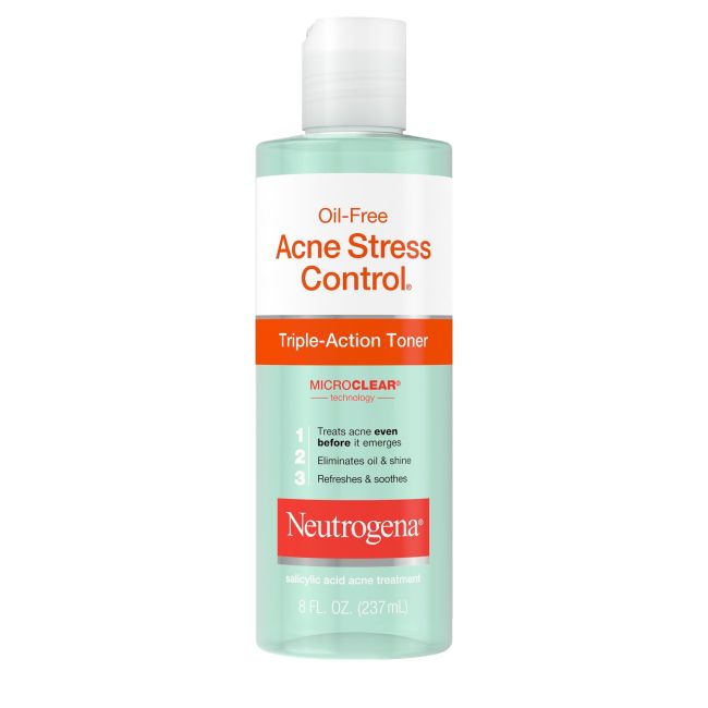 Help prevent and treat acne while soothing your skin with Neutrogena Oil-Free Acne Stress Control Triple-Action Facial Toner with 2% salicylic acid. This refreshing face toner for acne prone skin works in three different ways to give you clearer, shine-free skin. With MicroClear technology, it treats acne even before it emerges, boosting delivery of clinically proven salicylic acid acne medicine to unclog congested pores and allow treatment to penetrate deep to the source. The advanced oil dissolving complex in this face toner helps eliminate oil and control shine, even helping prevent future oil clogs in pores. The refreshing and soothing blend of skin soothers, including green tea and cucumber extracts, actively reduces redness and irritation. This oil-free toner works hard every day, regardless of whatever stress you have, to make acne one less stress in your life.